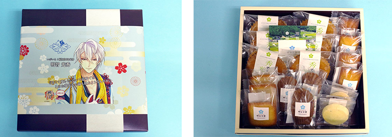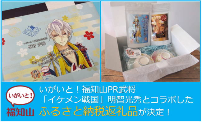 京都府福知山市は、『イケメン戦国◆時をかける恋』のキャラクターイラストやロゴを使用して、全国に福知山の商品をアピールするために、コラボレーションしたい事業者を9月~10月に募集しました。審査の結果、事業者は「明智茶屋」と「山城屋茶舗」に決定し、各1品ずつコラボ商品を販売します。
