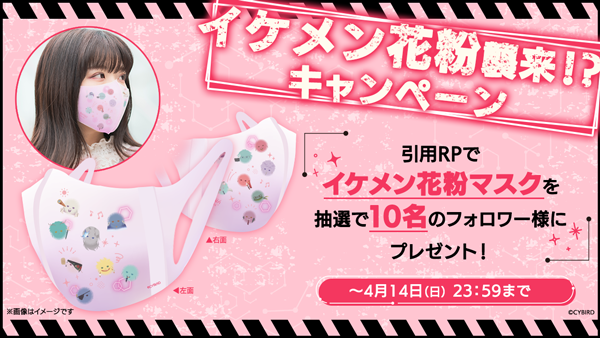 「イケメンシリーズ」公式X(https://twitter.com/cyikemen)では「イケメン花粉」の発見を記念して、イケメン花粉デザインのオリジナルマスクが抽選で10名に当たるキャンペーンを実施します。