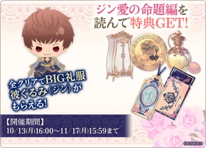 キャンペーン開始から2025年10月27日(月)15:59までにジン愛の命題編真実の愛END、情熱の愛ENDいずれかをクリアすると、特別な称号が獲得できます。